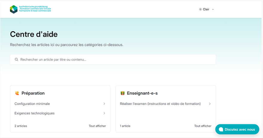 Pendant les examens, le chat en direct est également disponible (en bas à droite).